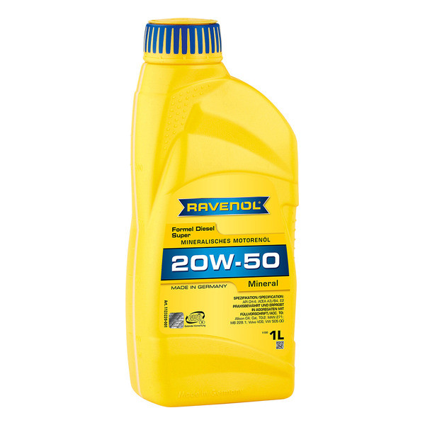 RAVENOL Formel Diesel Super 20W-50 -висококвалитетно минерално моторно уље за дизел моторе аутомобила и камиона са турбопуњачем и без њега. Пружа издржљив уљни филм и отпорност на смицање, одлична својства чишћења и високу отпорност на старење.