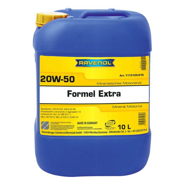 RAVENOL Formel Extra SAE 20W-50 – минерално моторно уље произведено за путничке бензинске и дизел моторе са и без турбо пуњача и комерцијална возила