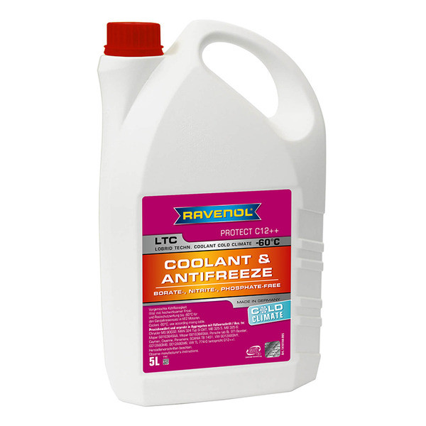 RAVENOL LTC COLD CLIMATE -60°C спремна за примену, претходно помешана са водом расхладна течност са заштитом од смрзавања и рђе за целогодишњу примену у системима за хлађење мотора путничких аутомобила, теренским возилима, минибусима и камионима, посебно у регионима са екстремно ниским температурама. Летом, ова расхладна течност такође одлично обавља своје основне функције у заштити од корозије и спречавању прегревања система хлађења.
