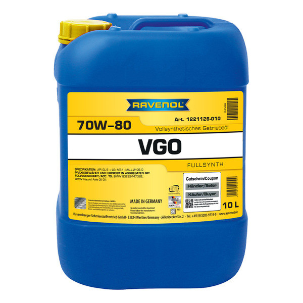 RAVENOL VGO SAE 70W-80 LS је потпуно синтетичко уље за хипоидне осовинске мењаче које садржи најновије синтетичке компоненте и дизајнирано је за возила са најнапреднијим технологијама мењача.